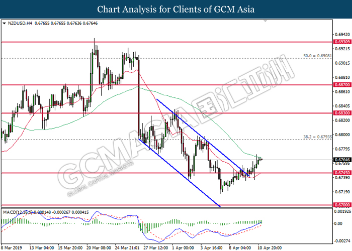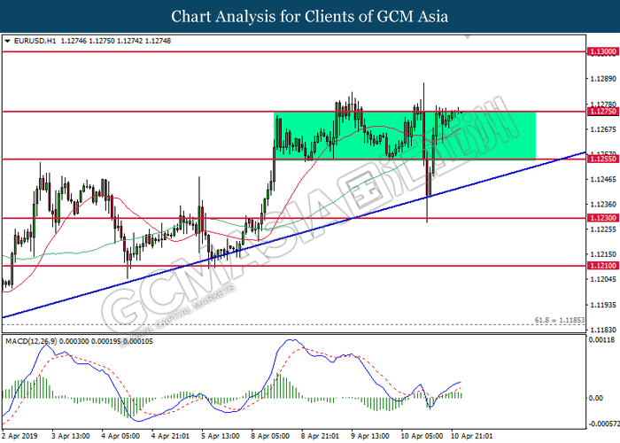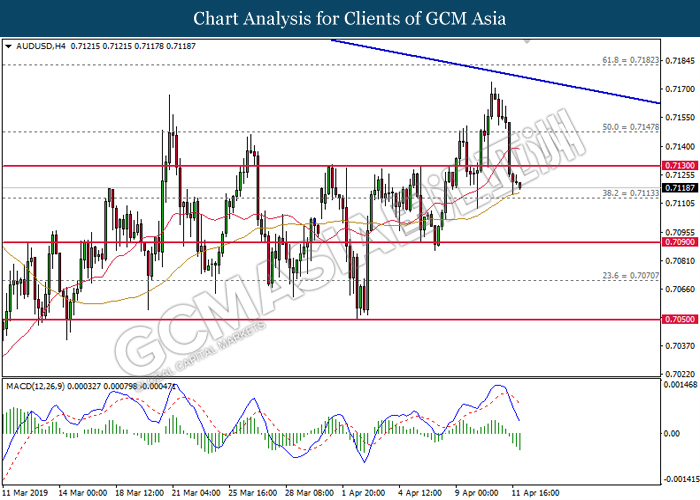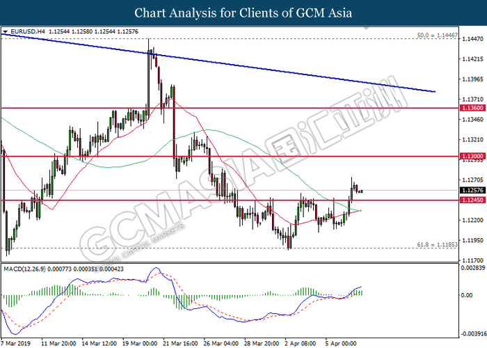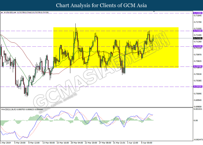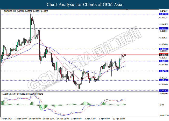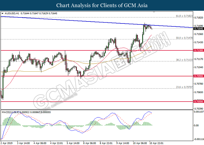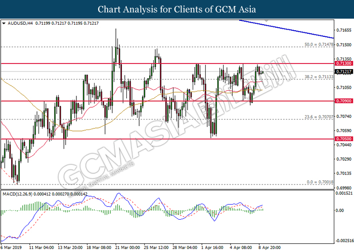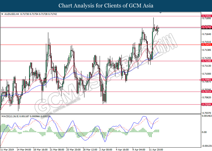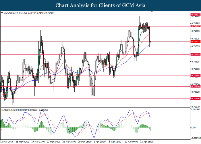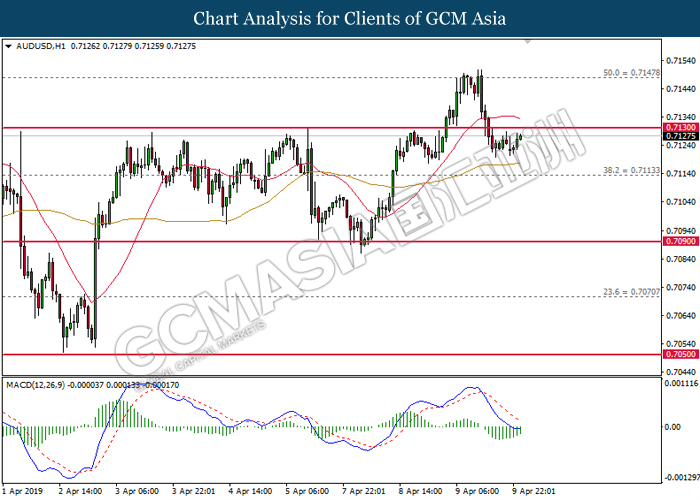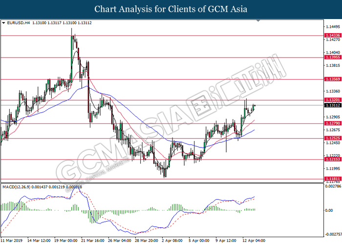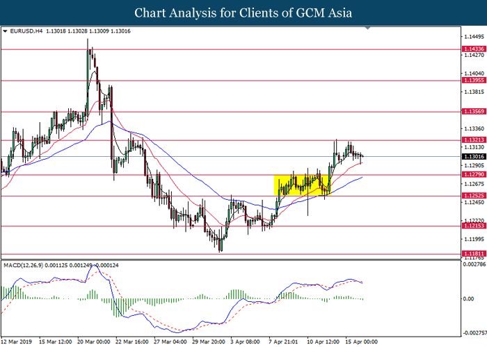 Australian dollar extended its gains during Asian trading session following better-than-expected economic data from its major trade partner – China. Official data from China showed that its economy expanded at an annualized rate of 6.4% for the first quarter of 2019, exceeding economist forecast for a growth of up to 6.3%. The data confounded investors’ worries over a possible slowdown in the world’s second largest economy after International Monetary Fund (IMF) gave bearish assessments with regards to global economic growth for the year 2019. As of writing, the pair of AUD/USD rose 0.16% to 0.7187, its highest level in 8-weeks. On the other hand, pair of EUR/USD recovered its losses by 0.17% to 1.1300 this morning. Euro received tremendous bearish selloff on yesterday following dovish rhetoric given by the European Central Bank (ECB). According to ECB, they expressed their doubts over prior economic projection and its model used as they are deemed too optimistic. Such signal has further piled up market concern over the economic progression in EU as recent data portrays some recessive risk in the region.
