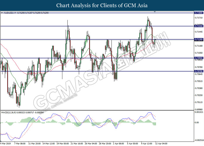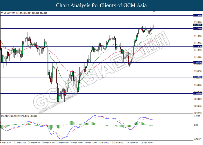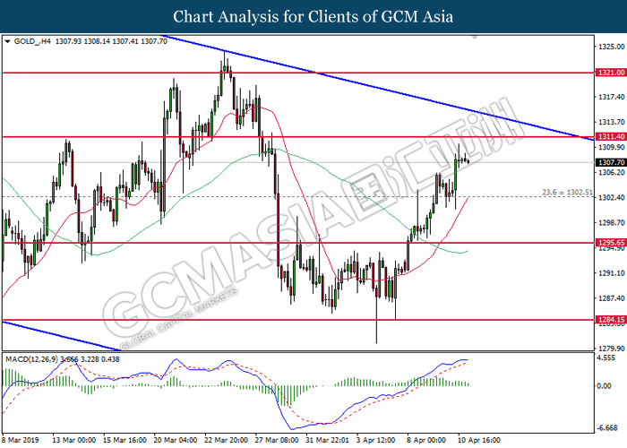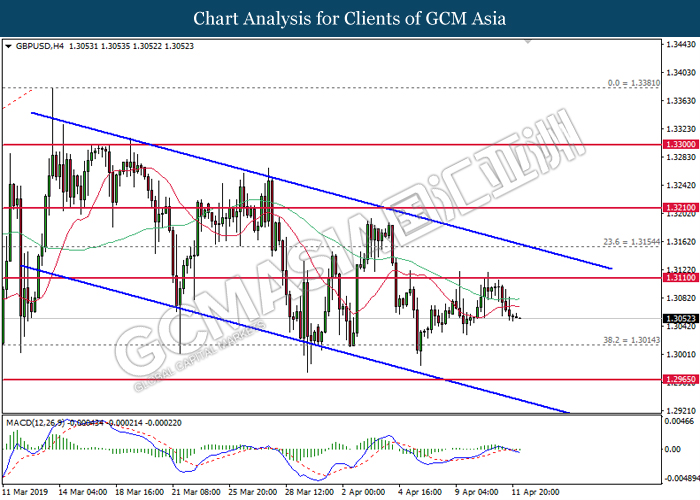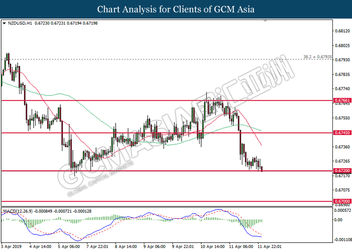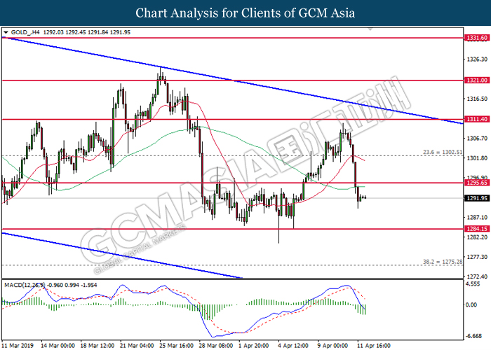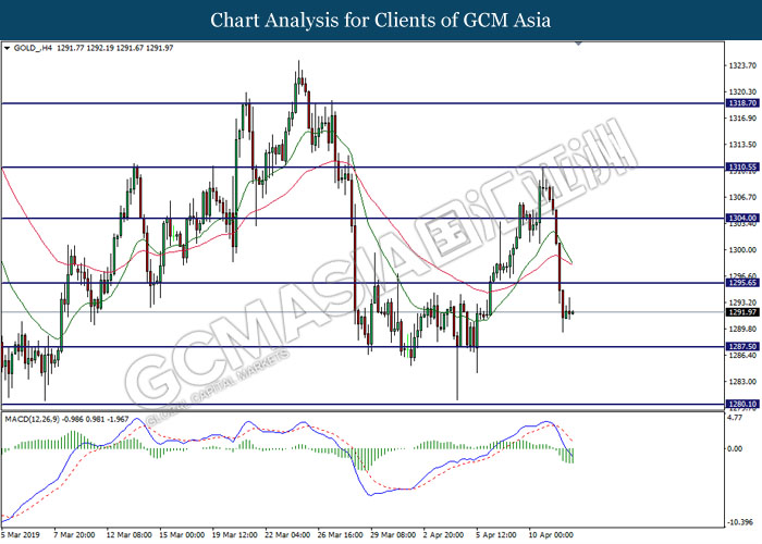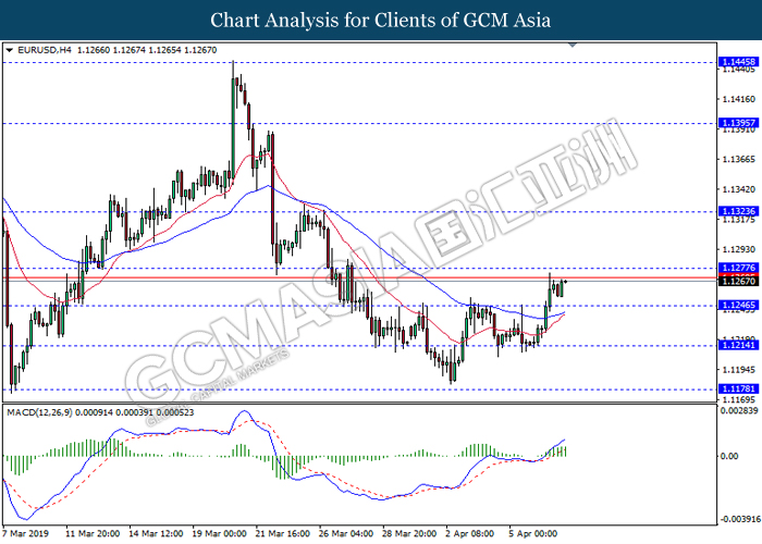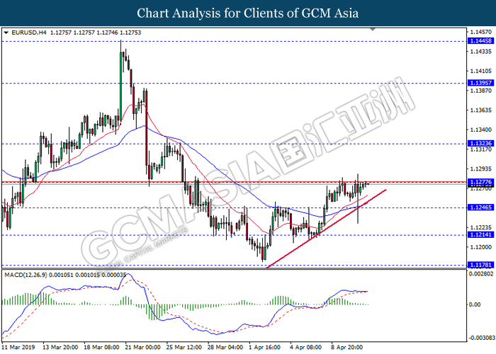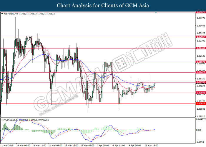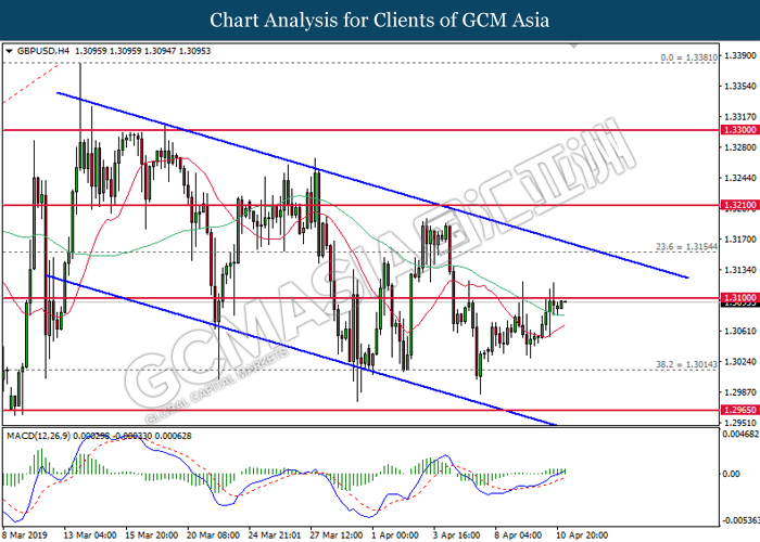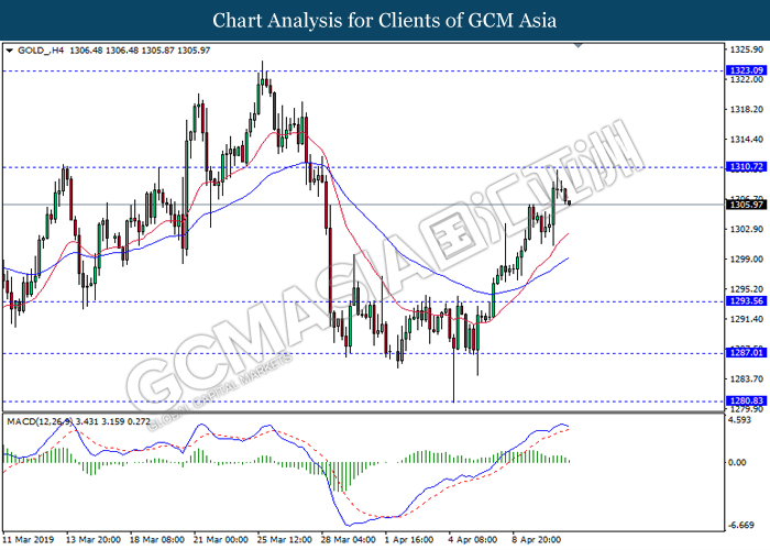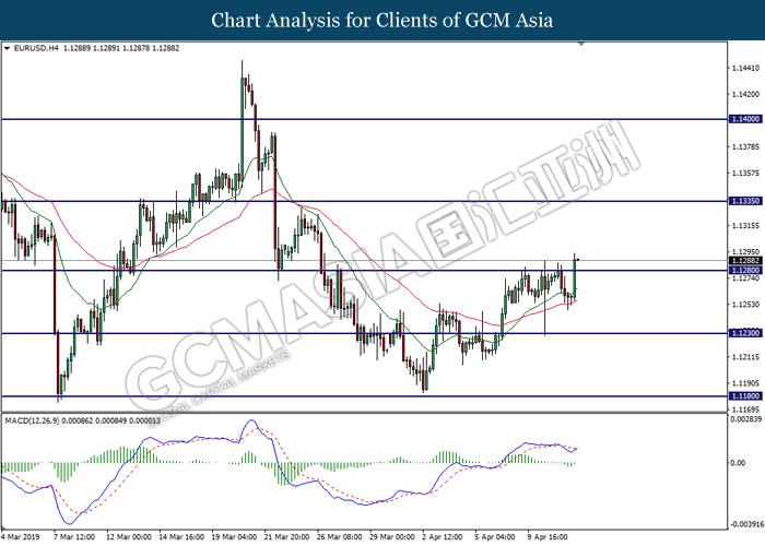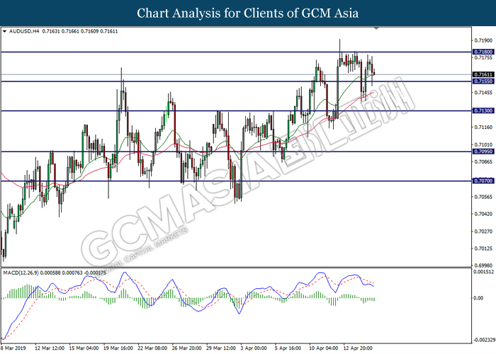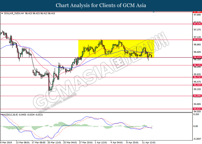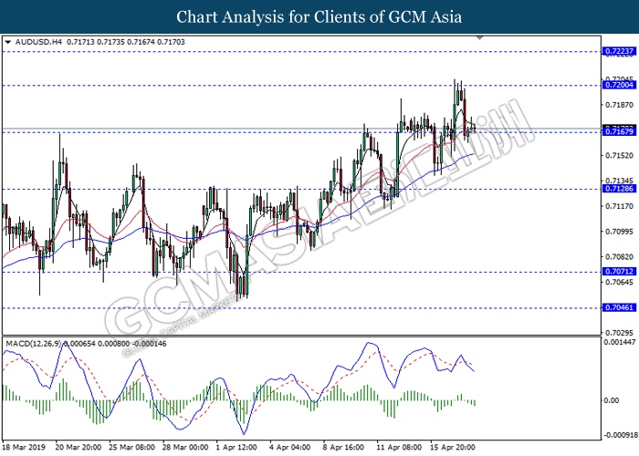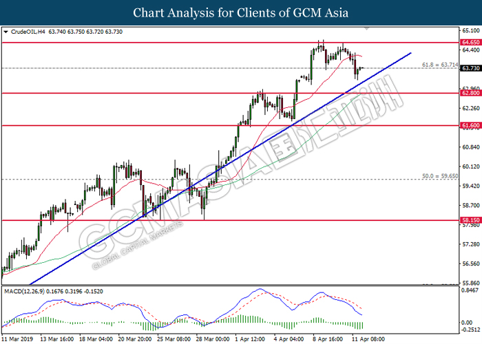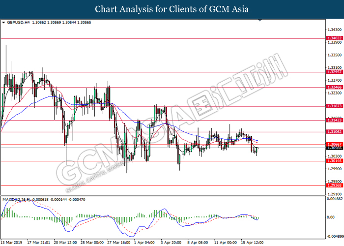 As for commodities, crude oil price rose 0.12% to $64.39 per barrel as of writing following latest supply data. According to reports from American Petroleum Institute (API), crude oil inventories unexpectedly fell by 3.1 million for the week ended April 12. At the same time, tensions in Libya and failing Venezuelan and Iranian exports due to U.S sanctions continue to boosting the appeal of the commodity. However, as recent reports on Moscow to end oil cut deal with OPEC, market will shift their focus towards the development as the ditch will cause heavy disruption in the oil market. On the other hand, gold price extend its losses by 0.08% $1276.10 a troy ounce at the time of writing following investor returned to risk-on mode due to recovering dollar and Venezuela heavy dump on the yellow metal.