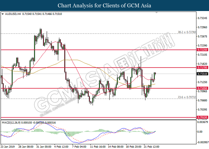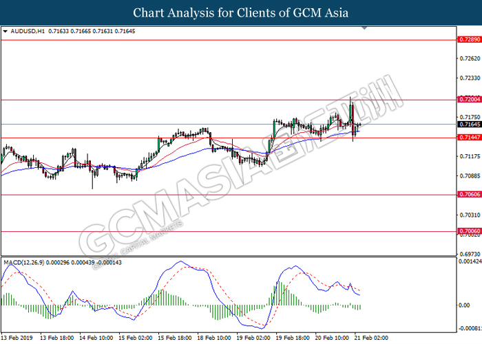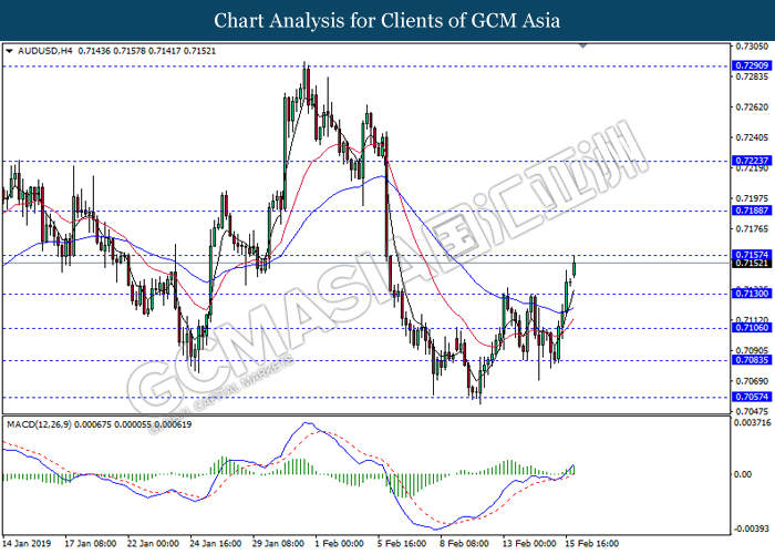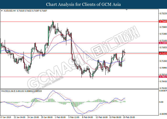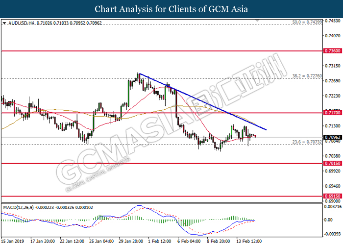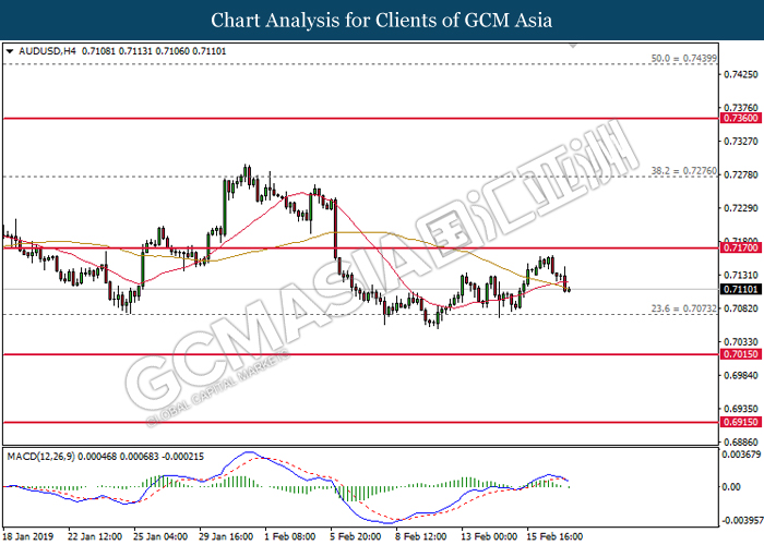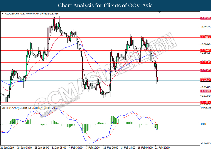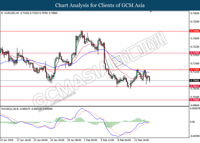 Greenback measuring against a basket of six major currency pairs was falling by 0.06% to 96.60 amid investors’ optimism towards the trade war negotiations held in Beijing last week. Although the White House reported that much progress are still needed for changes in the Chinese trade behavior, investors hope remained high that both economy powerhouses will reach a trade deal that would benefit both countries and put an end to the trade war. The risk aversion led investors to sell safe-haven dollar and enter into riskier markets such as pound and kiwi. Focus will be placed on next week’s trade talks in Washington while market participants hope for an agreement to end the trade war before the 1st March deadline for further tariffs. In other news, pair of GBP/USD gained 0.15% to 1.2905, supported by higher than expected Retail Sales data last Friday and the sell-off for dollar. Amid Brexit political turmoil, UK was still able to maintain a high consumer spending and healthy inflation level. Prime Minister Theresa May will struggle to persuade the EU to agree with changes over the Irish backstop plan this week as the deadline marches closer.