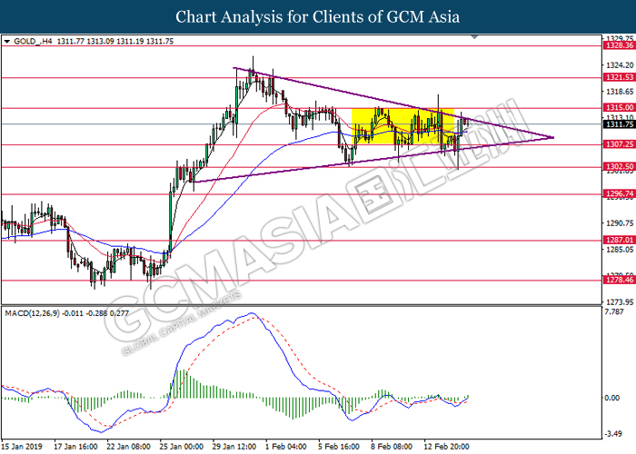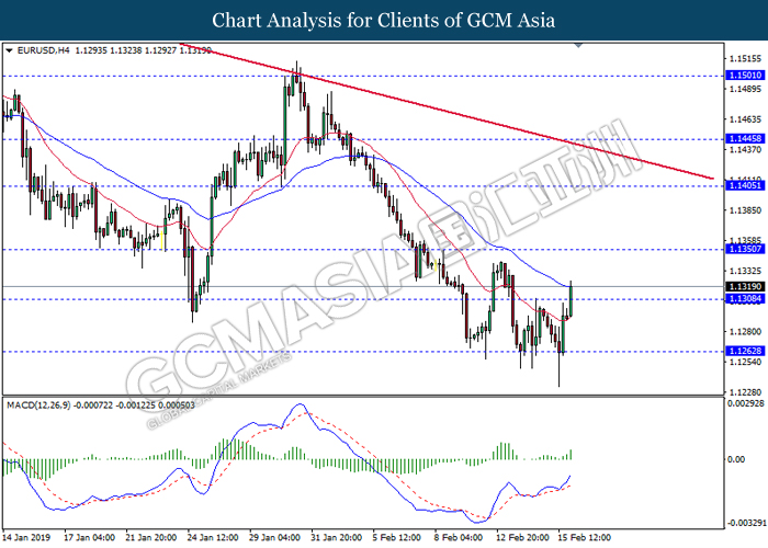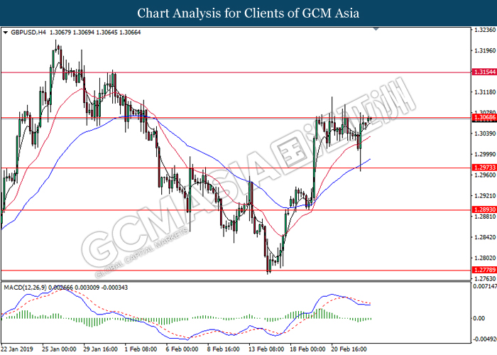 Pound sterling gains against the dollar while closing last Friday’s market at 1.3055 following positive developments. According to recent news, the extension of the Brexit official deadline is high likely to be inevitable as UK Prime Minister Theresa May planning to extend Article 50 and delay vote on her fresh Brexit plan by two weeks to March 12. Besides that, various media reports stated that few EU officials are ready to give as much as 21 months of extension to the formal date of March 29 when it comes to the UK’s departure from the EU, which adding further positive sentiment for the sterling.