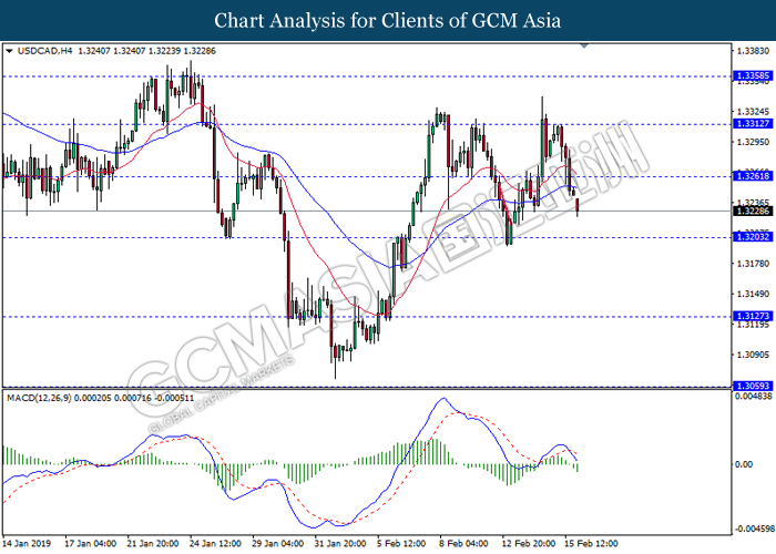 USDCAD, H4: USDCAD was traded lower following recent breakout below the previous support level 1.3260. MACD which illustrate bearish momentum with the formation of death cross suggest the pair to extend its losses towards the support level 1.3205.