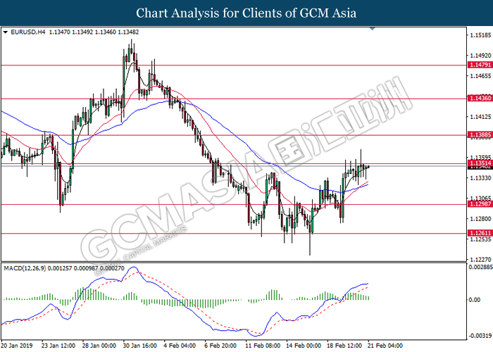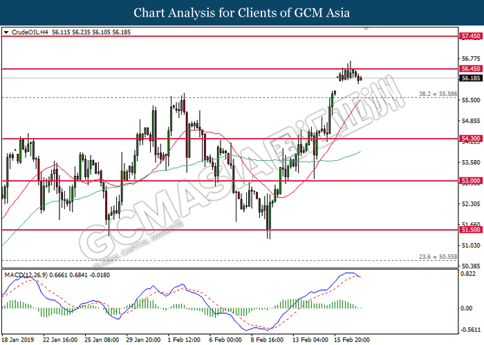 In the commodities market, crude oil price was traded higher by 0.39% to $56.35 per barrel due to changes in sentiment for the oil market. OPEC’s latest monthly oil market report indicated a fall in total production last month by 800K bpd to a low of 30.8 million bpd. As OPEC’s production cut effect starts to take place, the oil market was further supported by US sanctions on Venezuelan oil. Likewise, gold price increased by 0.14% to $1323.00 per troy ounce amid weakened dollar.