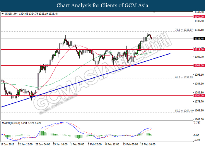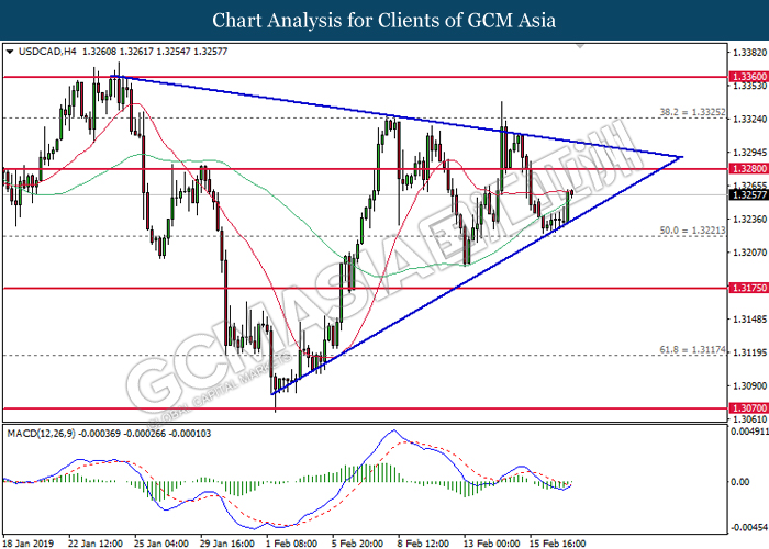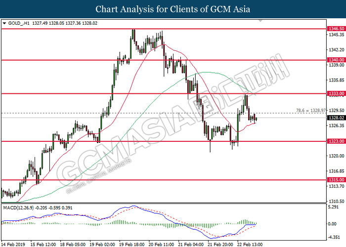 As for commodities, crude oil price rose 0.26% to $56.89 per barrel. Oil prices received some support since last Friday after US Baker Hughes reported its first decline in 3 weeks over US oil rigs by 4 to 853. Likewise, further progressiveness on trade talks between the US and China has also increased the optimism in the financial market towards global economic outlook and crude demands. On the other hand, gold price ticks up 0.02% to $1,327.86 a troy ounce following diminishing chances for a rate hike in the US.