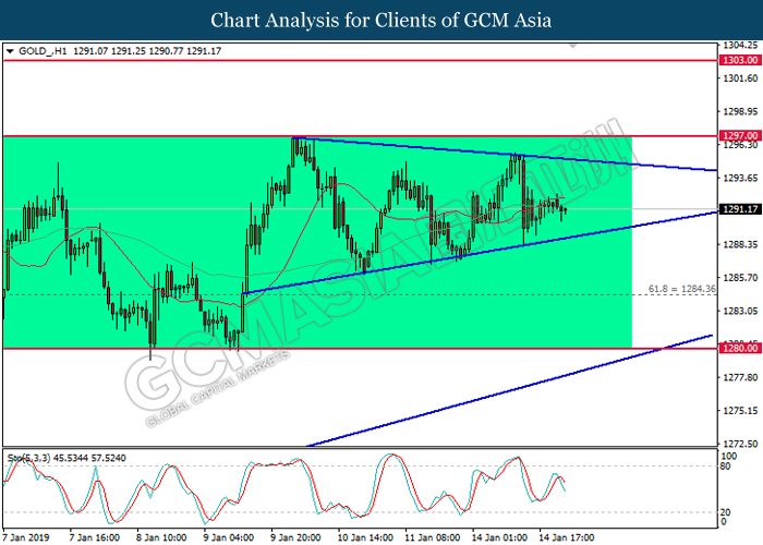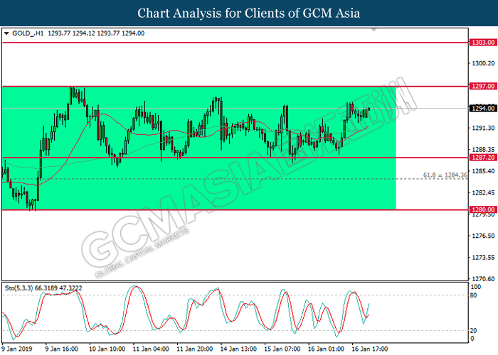As for commodities, crude oil price rose 0.33% to $52.34 per barrel. Oil prices rebounds from its prior low as US considers to lift China trade tariffs, a move which could reduce the trade tension between both nations. On the other hand, gold price tumbled 0.09% to $1,290.79 a troy ounce following resilient US dollar.