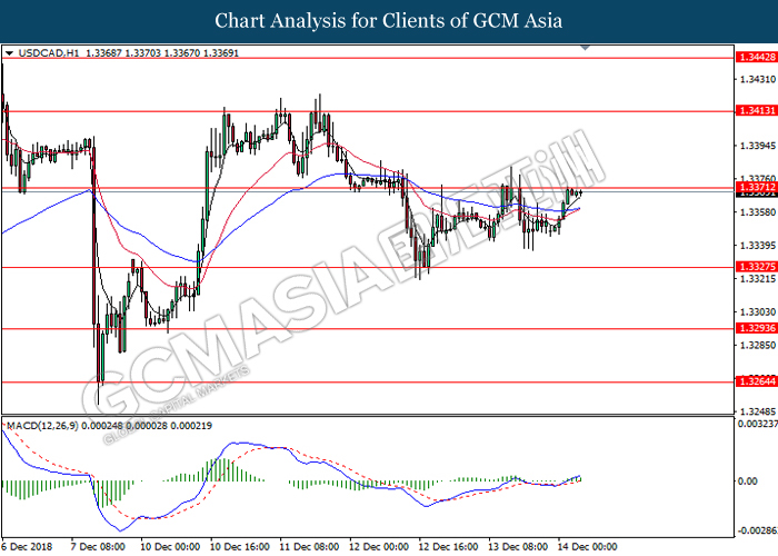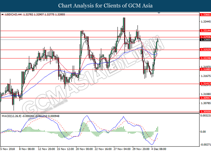 USDCAD, H4: USDCAD was traded higher following prior closure above 1.3315. MACD which illustrate persistent bullish signal suggests the pair to extend its gains after successfully closing above 1.3380.