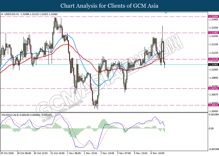 Greenback rebounds from its session low last Friday following optimistic employment data which shows a sharp rebound last month. As of writing, the dollar index depreciates slightly by 0.15% to 96.26. According to the US Labor Department, the economy has added 250,000 jobs for the month of October, exceeding economist forecast of only 193,000 jobs. Likewise, wage growth came in within expectation at the rate of 0.2%, further cementing the outlook for higher inflationary pressure in the long-run if its rising pace persists. Overall, the optimistic jobs data has indicated that the labor market continued its resilience, underlining the case for further interest rate hike from the Federal Reserve this coming December. On the other hand, pair of USD/CAD depreciates by 0.08% to 1.3100 during early Asian trading session. Last Friday, the pair rebounds sharply from its weekly low following downbeat employment data from Canada. For the month of October, Canada’s economy generated only 11,200 jobs, lesser than economist forecast of 12,700 jobs. However, gains on the pair remains limited after unemployment rate depreciates from 5.9% to 5.8%, indicating further tightening in Canada’s labor condition.
