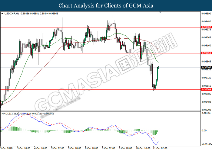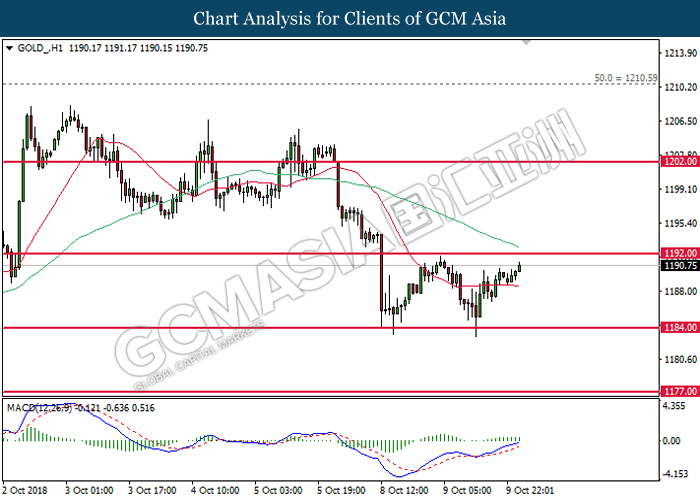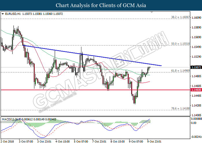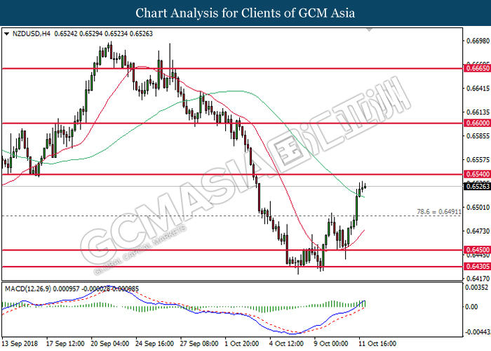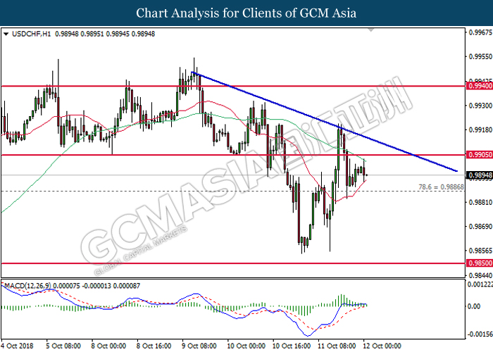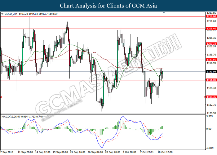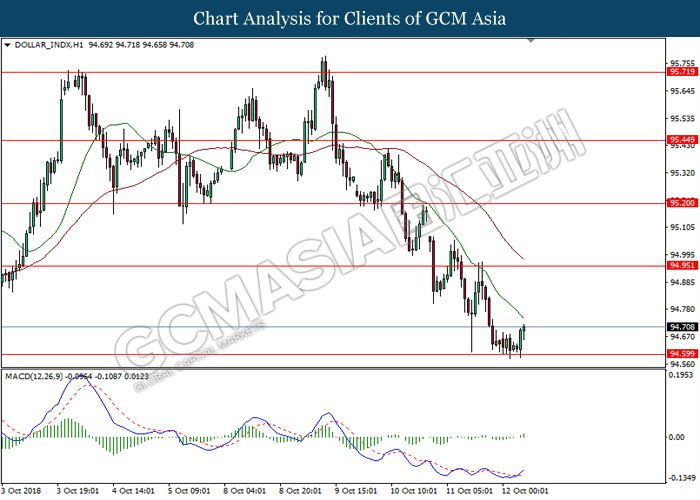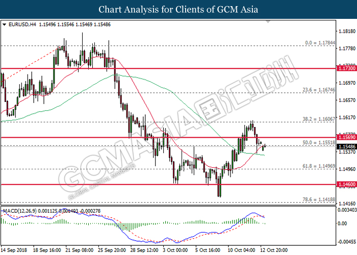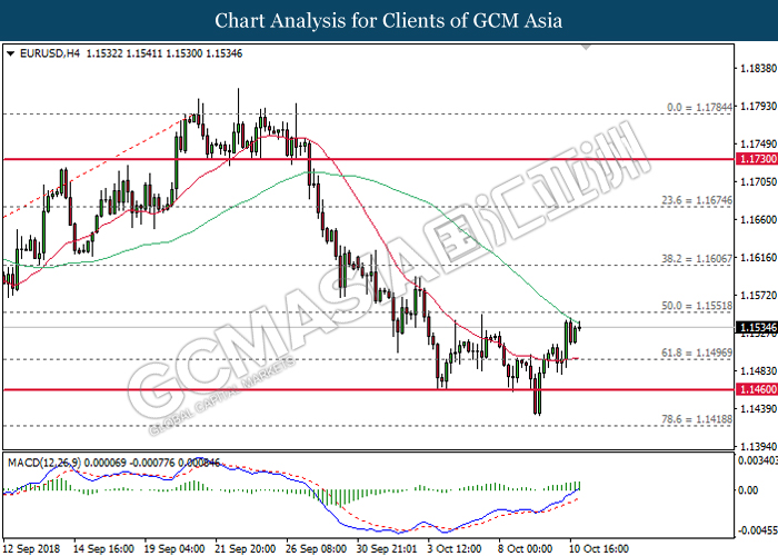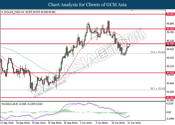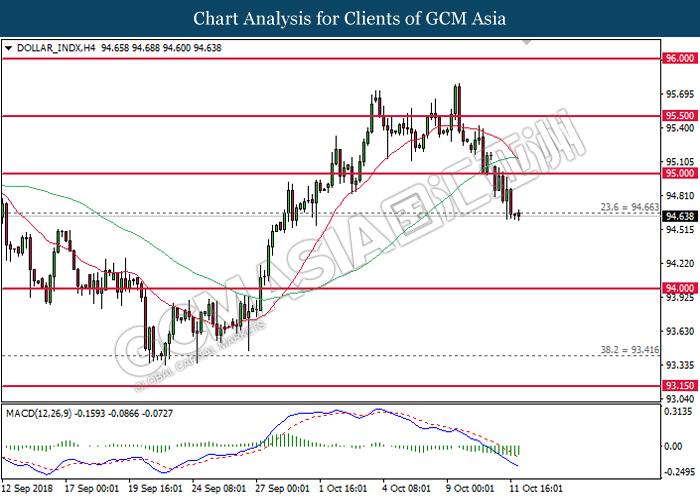 Greenback retreats further against other major peers on yesterday after recent inflation data undershot economist’s expectation for last month. According to US Labor Department, Consumer Price Index rose to 2.3% for the year till September, missing economist forecast for a reading of 2.4%. However, many economists postulate that while recent inflation begins to show some signs of depreciation, it is still unlikely to deter US Federal Reserve’s plan to gradually increase their interest rates for the long-run. Likewise, greenback was also kept at its backfoot following a rebound in Euro following diminished political risk in Italy. Per report, Italian Senate has approved a motion to push back the balanced budget from 2020 to beyond 2021 on yesterday after the central government introduced a higher budget deficit target of 2.4% which received backslash from the European Union. As of writing, dollar index ticks up 0.02% to 94.67 while pairing of EUR/USD depreciates slightly by 0.03% to 1.1590.