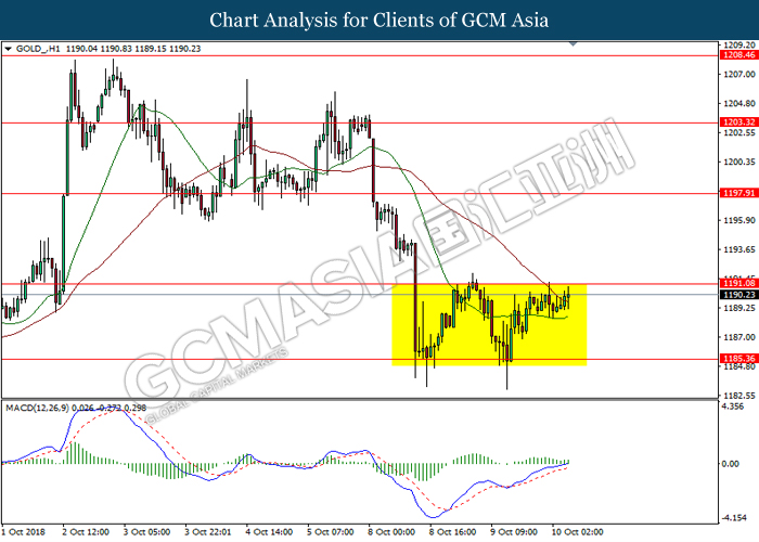 As for commodities market, crude oil price rose 0.05% to $76.05 per barrel this morning. The commodity remains broadly supported as investors latched their focus on the upcoming Iranian sanctions that may significantly reduce global crude oil supply. Otherwise, gold price was down by 0.15% to $1,198.25 a troy ounce after being pressured by a stronger US dollar.