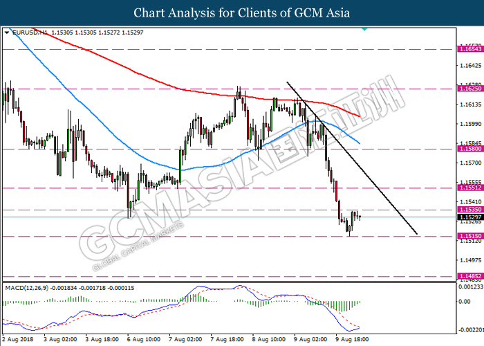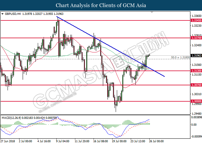 According to the US Department of Labor, the retail data reading has come with an improvement of 0.1% which is 0.2%, in line with the market expectations which hinted to a steady increase of pressure in inflation that keeps the Federal Reserve on track to gradually raise interest rates this year. Besides that, tensions between US with around the globe especially trade war between US and China has been in the market spotlight as US has implement multiple sanctions and also tariffs around different countries which cause substantial impact for the dollar’s risk sentiment. Recently China has retaliate with tariff of 25% on $16 billion worth of US products, however the effect doesn’t impose significant negative effect for the dollar as the markets remain positive on the dollar in the long term following with the US imports are much lesser than China. However, the ongoing uncertainty still weight in the sentiment and investors will remain focus in the progress of the trade war.