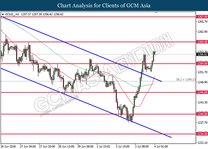 As for commodities, crude oil price extended its losses by 0.38% to $72.96 per barrel after EIA reported that US crude stockpiles rose by 1.245 million barrels last week, confounding expectation to reduce by 5.200 million barrels. Subsequently, gold price was traded flat around $1,257.68 a troy ounce while market participants anticipate the release of Nonfarm Payrolls report due later tonight.