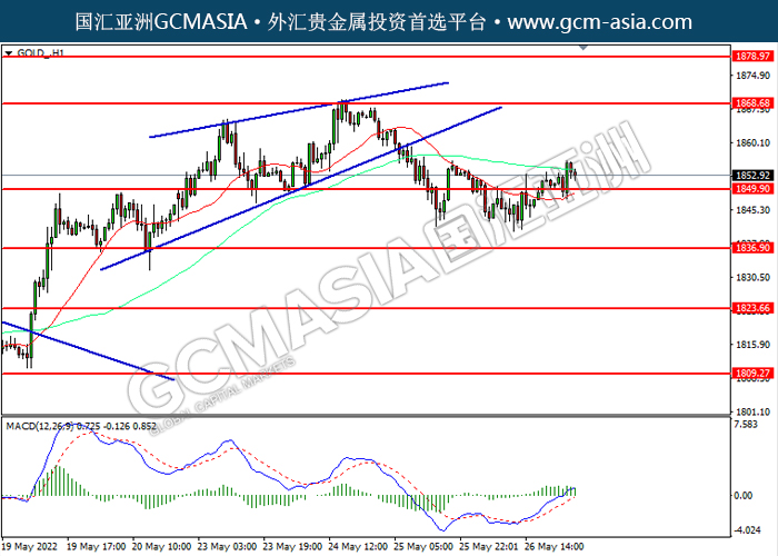 In commodities market, crude oil price appreciated by 0.37% to $110.69 per barrel as of writing over the easing lockdown in China had led to the soaring demand on crude oil. On the other hand, gold price appreciated by 0.48% to $1850.60 per troy ounces as of writing following the slump of US Dollar.