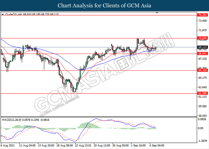 In the commodities market, the crude oil price was up 0.1% to $69.87 per barrel as of writing amid easing oil production. According to the Bureau of Safety and Environmental Enforcement, it stated that there were about 1.7 million of barrels of US oil output remained shut. Not only that, oil production in Gulf of Mexico remained constrained following the Hurricane Ida which induced large scale of damage. On the other hand, the gold price rose 0.2% to $1813.33 a troy ounce as of writing amid weakening US dollar.