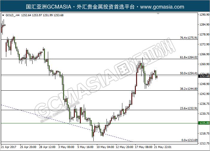 GOLD H4:黄金低位回调,震荡上冲,目前回测50水平线,高位存在一定卖盘,若继续承压,或空头转强;上方关注1255阻力和1265阻力;下方关注1245支撑和1235支撑。