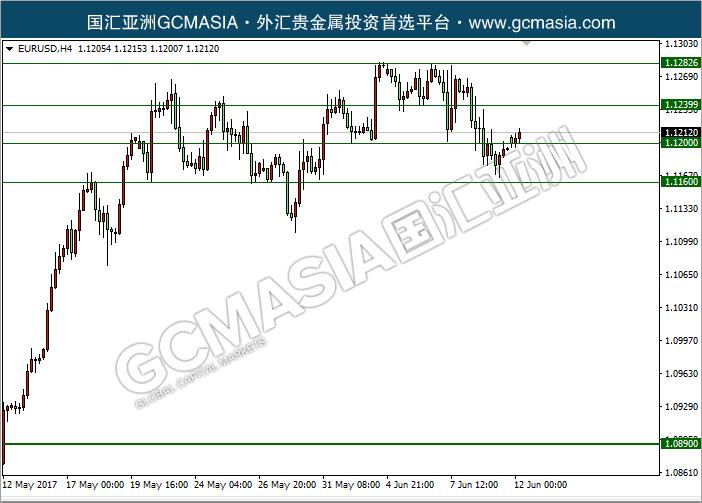 美元触及近8个月低点后,在上周的最后两个交易日大幅反弹回升,抹掉之前的全部跌幅并一度触及近3周高位,上周录得了小幅上涨。事实证明美国联邦调查局前局长科米的证词并没有给特朗普政府造成实质性的威胁,随后美元展开大幅反弹。目前美指冲高回落,震荡略微回调,欧美高位盘整,震荡偏强,交投于1.1210;澳美高位回调,震荡偏强,交投于0.7530;美日高位回落,震荡回调,交投于110.2;黄金高位回落,震荡下行,交投于1266.4。