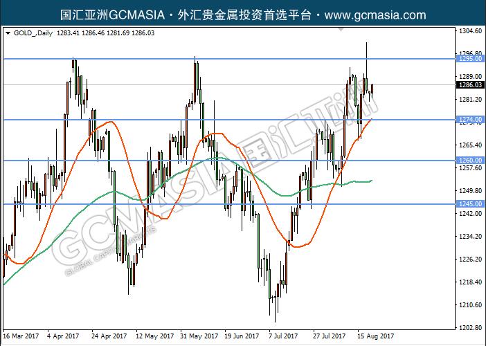 GOLD D1:黄金震荡上行,目前低位处于高位盘整;均线张口扩大,高位存在卖盘,逢高看空为主。上方关注1295压力,下方关注1274支撑和均线支撑。