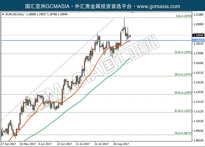 上周五,20:30美国将公布8月季调后非农就业人口仅录得15.6万人,不及预期18万人;维持于16年低位的失业率也从4.3%回升至4.4%。此份数据并未统计“飓风”后就业数据,然而因为飓风“哈维”导致休斯顿遭到了巨大破坏,也重创了当地经济,料想9月、10月就业将可能也成为加息路劲畔脚石。面对就业数据疲软与通胀前景的堪忧令市场对美联储12月加息计划失去了信心。据CME“美联储观察”工具显示,非农数据公布后,市场对于12月再次加息的预期,从公布前的41.1%迅速下落至36.2%,美元指数也短线下挫近500点,最低触及91.99。随后不久,欧洲央行表示:需要到12月份才能完全做好准备调整QE计划,并且希望以极度谨慎的态度对待政策。鸽派论调传出后,几乎逆转了非农不利带来的影响,欧元/美元快速跳水,美元迅速收复失地,金银也回吐涨幅。