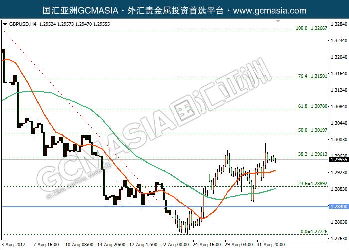 GBPUSD H4:镑美触底反弹,目前测试38.2水平位支撑,等待突破;均线低位排列,震荡偏强,后市上行几率较大。上方关注1.2960压力和1.3020压力,下方关注均线支撑和1.2890支撑。