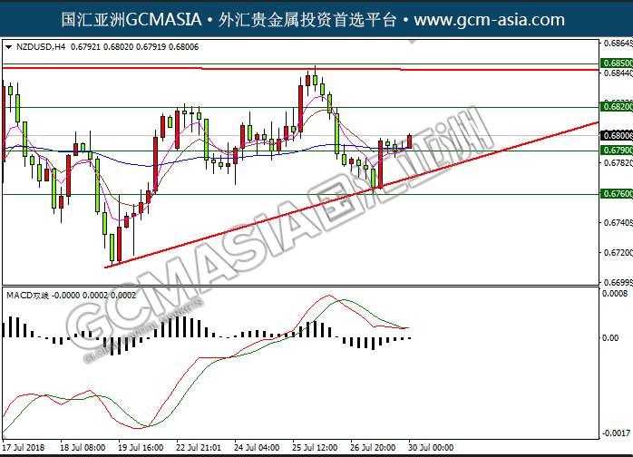 - NZDUSD H4:纽美三角区间震荡盘整,测试前期的低点支撑后反弹;均线拐向趋缓;目前上破前期的整点阻力,短期仍有一定的上行空间。上方关注0.6820的压力和0.6850的压力,下方关注0.6790的支撑和0.6760的支撑。