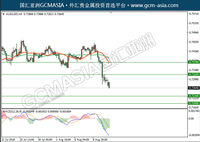- AUDUSDH4:澳美盘整后下跌;均线交叉,空头排列;目前测试下破前期的关键支撑,MACD形成死叉,动能强势。短期关注能否下破承压于前期的关键支撑。上方关注0.7370压力和0.7320压力,下方关注0.7230的支撑和0.7200的支撑。
