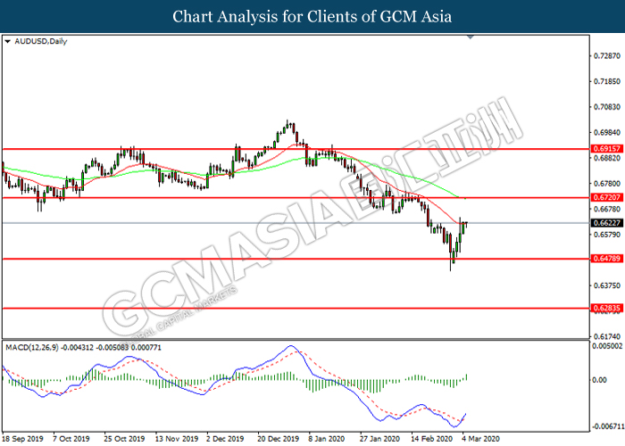 AUDUSD, Daily: AUDUSD telah didagang dengan lebih tinggi selepas ia melantun dari tahap sokongan 0.6480. MACD yang memaparkan momentum bullish mencadangkan pasangan ini untuk melanjutkan keuntungannya ke arah tahap rintangan 0.6720.