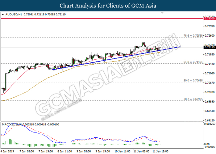 AUDUSD, H1: AUDUSD telah didagang dengan lebih tinggi selepas ia melantun dari garisan trend menaik. MACD yang memaparkan penyusutan pada momentum menurun mencadangkan pasangan ini untuk meningkat selanjutnya dan menuju ke arah 0.7255.