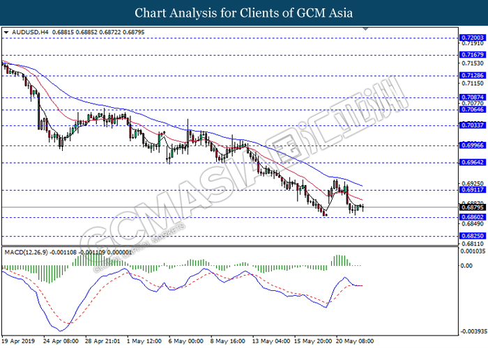 AUDUSD, H4: AUDUSD telah didagang secara rata selepas ia melantun dari tahap sokongan di 0.6860. Oleh kerana kekurangan momentum dan isyarat daripada MACD, pemecahan pada tahap rintangan 0.6910 atau tahap sokongan 0.6860 adalah diperlukan untuk pengesahan selanjutnya sebelum memasuki pasaran.