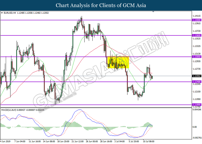 EURUSD, H4: EURUSD telah didagang dengan lebih rendah sementara menguji berdekatan garisan MA-20 (hijau) dan tahap sokongan 1.1240. MACD yang menunjukkan penyusutan pada momentum bullish mencadangkan pasangan ini untuk melanjutkan kerugiannya selepas ia berjaya untuk memecahkan pada garisan MA-20 dan tahap sokongan tersebut.