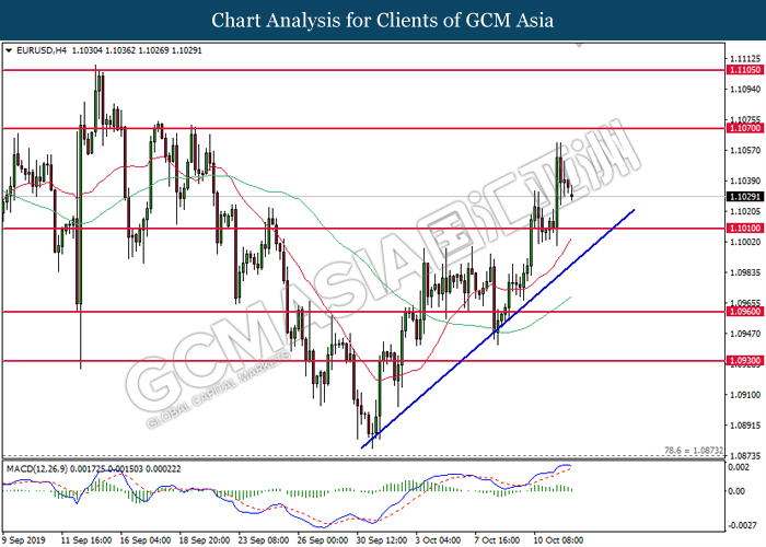 EURUSD, H4: EURUSD telah didagang dengan lebih tinggi selepas ia berundur dari paras tingginya. MACD yang memaparkan penyusutan pada momentum menaik mencadangkan pasangan ini untuk didagang dengan lebih rendah bagi jangka pendek sebagai pembetulan teknikal.