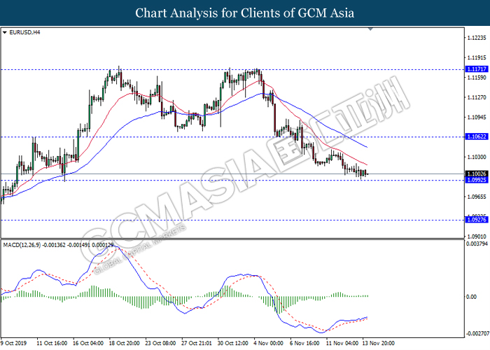 EURUSD, H4: EURUSD telah didagang dengan lebih rendah sementara ia sedang menguji berhampiran dengan tahap sokongan 1.0990. Namun, MACD yang memaparkan isyarat bias bullish mencadangkan pasangan ini untuk mengalami pembetulan teknikal ke arah tahap rintangan 1.1060.