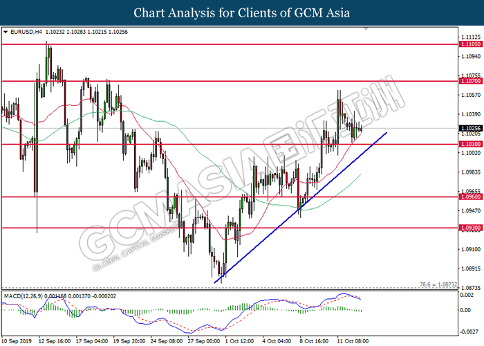 EURUSD, H4: EURUSD telah didagang dengan lebih rendah selepas ia berundur dari paras tingginya. MACD yang memaparkan isyarat bearish mencadangkan pasangan ini untuk didagang dengan lebih rendah bagi jangka pendek sebagai pembetulan teknikal.