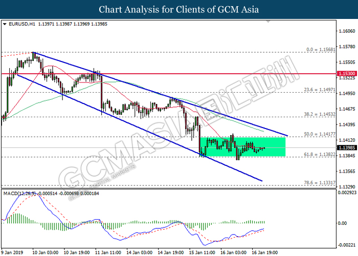 EURUSD, H1: EURUSD telah didagang dengan lebih tinggi selepas ia melantun dari tahap sokongan 1.1380. MACD yang memaparkan isyarat bullish mencadangkan pasangan ini untuk meningkat selanjutnya dan menuju ke arah 1.1420.
