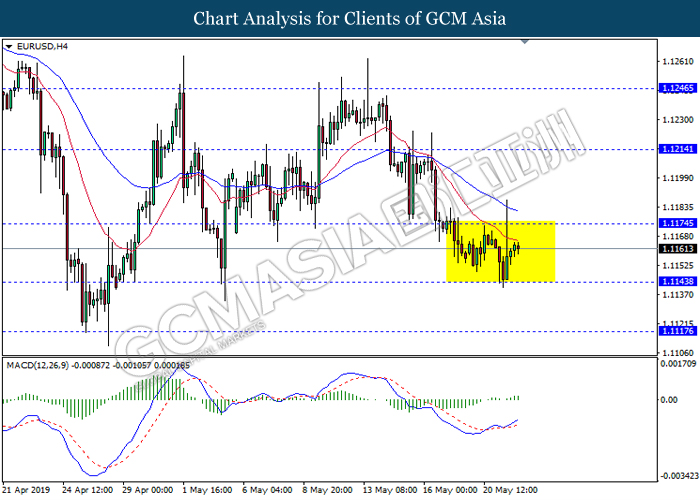 EURUSD, H4: EURUSD telah didagang dalam saluran sisi susulan dengan pengunduran dari tahap rintangan di 1.1175. MACD yang menunjukkan momentum bullish yang berkurangan mencadangkan pasangan ini untuk melanjutkan pengundurannya ke arah tahap sokongan di 1.1145.