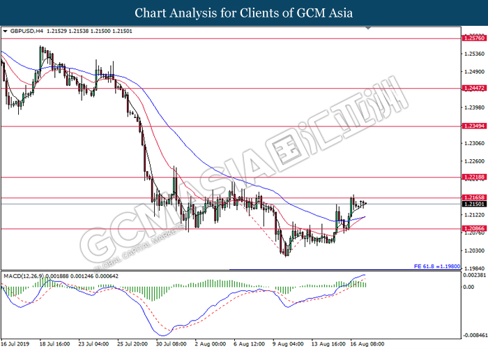GBPUSD, H4: GBPUSD telah didagang dengan lebih tinggi sementara menguji pada tahap rintangan 1.2165. Namun, MACD yang memaparkan penyusutan pada momentum bullish mencadangkan pasangan ini untuk mengalami pembetulan teknikal jangka pendek dan berundur ke arah tahap sokongan 1.2085.