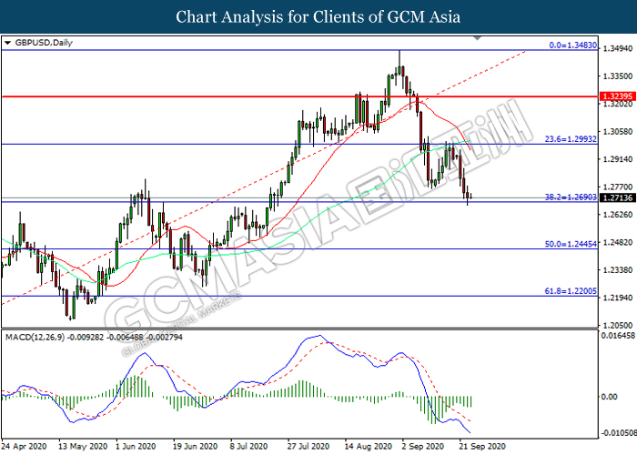 GBPUSD, Daily: GBPUSD telah didagang dengan lebih rendah sementara kini menguji di tahap sokongan 1.2690. MACD yang memaparkan momentum bearish mencadangkan pasangan ini untuk melanjutkan kerugiannya selepas ia memecah tahap sokongan tersebut.