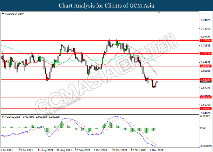 NZDUSD, Daily: NZDUSD telah didagang dengan lebih tinggi sementara kini menguji di tahap rintangan 0.6815. MACD yang memaparkan momentum bearish yang berkurangan mencadangkan pasangan ini untuk melanjutkan keuntungannya selepas ia memecah tahap rintangan tersebut.