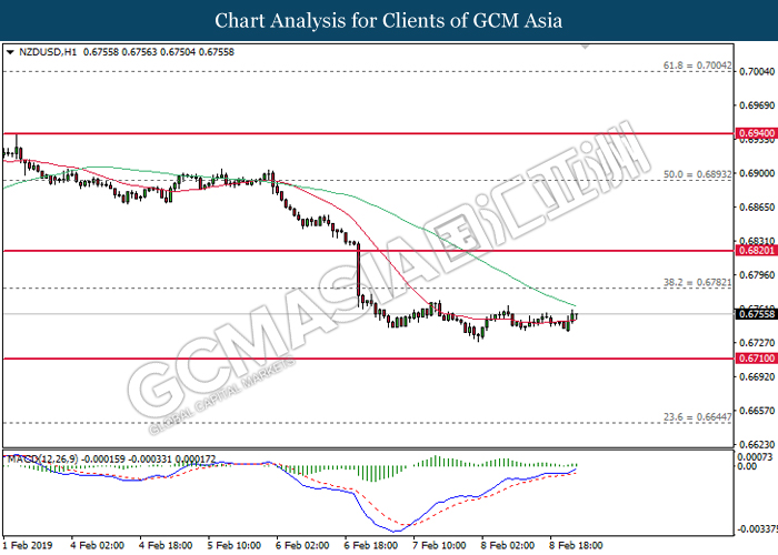 NZDUSD, H1: NZDUSD telah didagang dengan lebih tinggi selepas ia melantun dari tahap sokongan 0.6710. Oleh kerana MACD masih memaparkan isyarat bullish, pasangan ini dijangka untuk didagang dengan lebih tinggi bagi jangka pendek sebagai pembetulan teknikal.