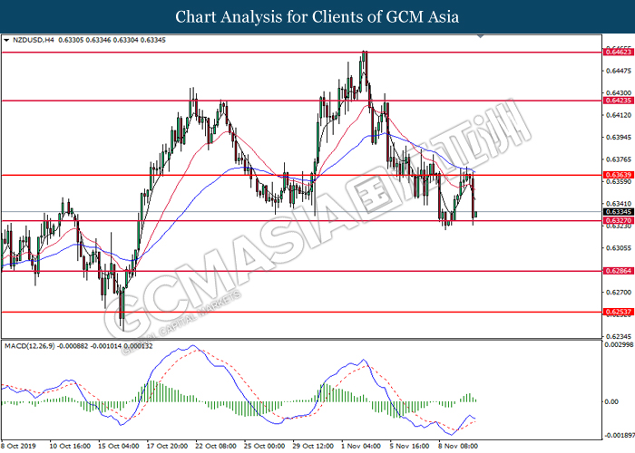 NZDUSD, H4: NZDUSD telah didagang dengan lebih rendah sementara ia sedang menguji tahap sokongan 0.6325. MACD yang memaparkan momentum bullish yang berkurangan mencadangkan pasangan ini untuk melanjutkan kerugiannya selepas ia memecah tahap sokongan di 0.6325.