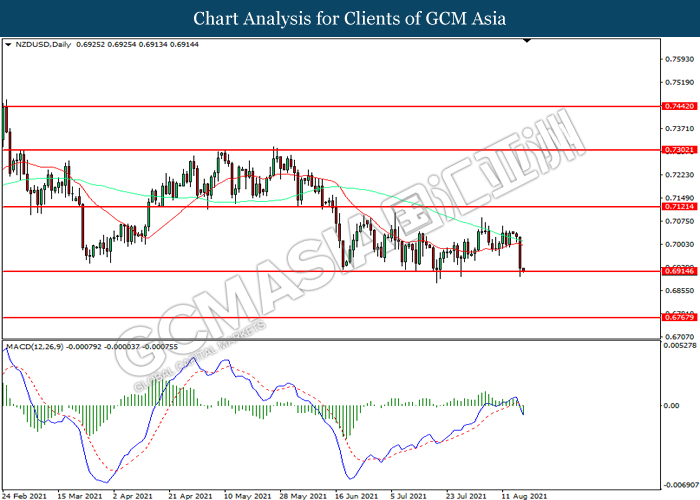 NZDUSD, Daily: NZDUSD telah didagang dengan lebih rendah sementara kini menguji di tahap sokongan 0.6915. MACD yang memaparkan momentum bearish mencadangkan pasangan ini untuk melanjutkan kerugiannya selepas ia memecah tahap sokongan tersebut.