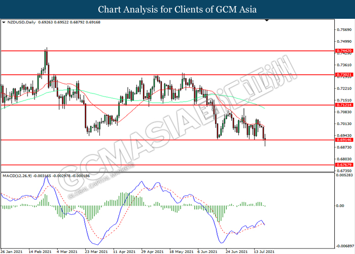 NZDUSD, Daily: NZDUSD telah didagang dengan lebih rendah sementara kini menguji di tahap sokongan 0.6915. MACD yang memaparkan momentum bearish mencadangkan pasangan ini untuk melanjutkan kerugiannya selepas ia memecah tahap sokongan tersebut.