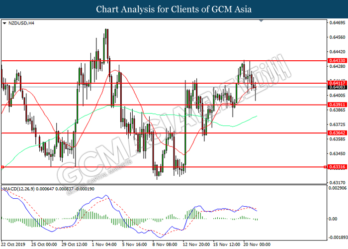 NZDUSD, H4: NZDUSD telah didagang dengan lebih rendah selepas ia memecah tahap sokongan terdahulu 0.6410. MACD yang memaparkan momentum bearish mencadangkan pasangan ini untuk melanjutkan kerugiannya ke arah tahap sokongan 0.6390.