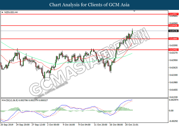 NZDUSD, H4: NZDUSD telah didagang dengan lebih tinggi selepas ia memecah tahap rintangan terdahulu 0.6385. Namun, MACD yang memaparkan momentum bullish yang berkurangan mencadangkan pasangan ini untuk mengalami pembetulan teknikal bagi jangka pendek.