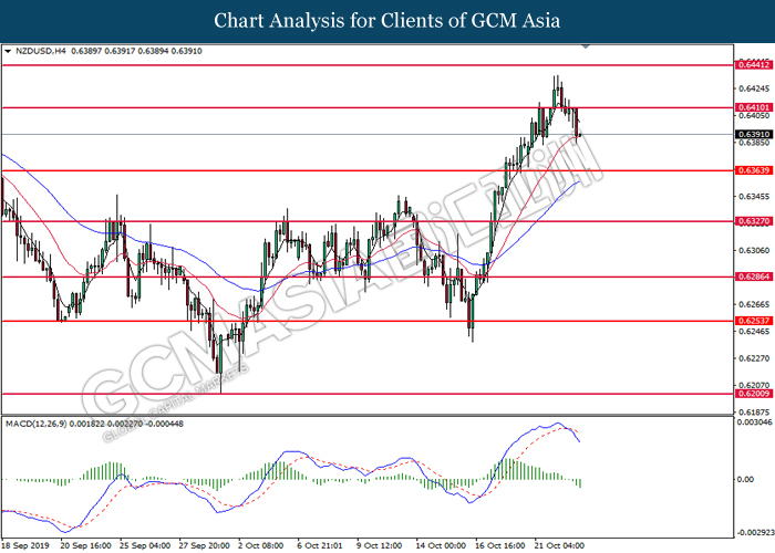 NZDUSD, H4: NZDUSD telah didagang dengan lebih rendah sementara ia sedang menguji garisan 20 MA (Merah). MACD yang memaparkan momentum bearish mencadangkan pasangan ini untuk melanjutkan kerugiannya selepas ia berjaya memecah garisan 20 MA (Merah).