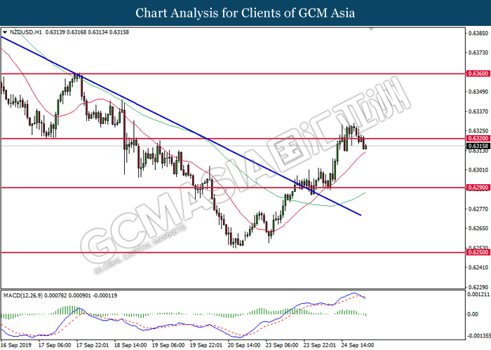 NZDUSD, H1: NZDUSD telah didagang dengan lebih rendah selepas ia berundur dari paras tingginya. MACD yang memaparkan isyarat bearish mencadangkan pasangan ini untuk meneruskan kerugiannya selepas ia ditutup di bawah garisan 20-MA (merah).