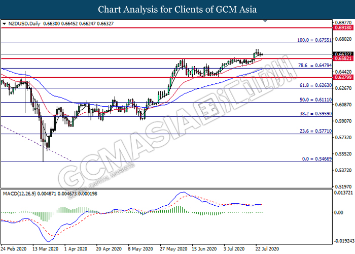 NZDUSD, Daily: NZDUSD telah didagang dengan lebih tinggi selepas ia memecah tahap rintangan sebelumnya di 0.6580. Oleh disebabkan kekurangan isyarat daripada MACD, ia dicadangkan untuk menunggu lebih banyak isyarat muncul sebelum memasuki ke pasaran tersebut.