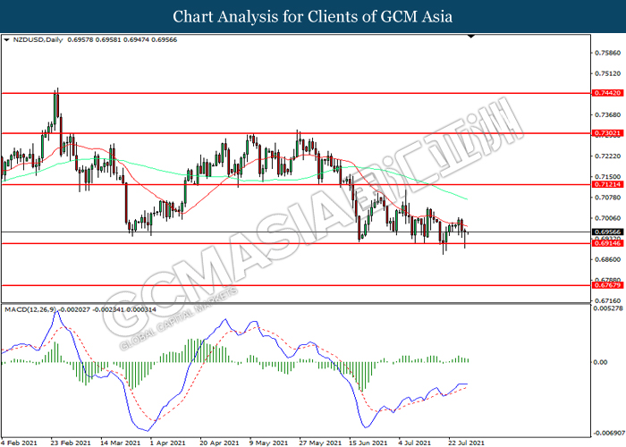 NZDUSD, Daily: NZDUSD telah didagang dengan lebih rendah sementara kini menguji di tahap sokongan 0.6915. MACD yang memaparkan momentum bullish yang berkuranan mencadangkan pasangan ini untuk melanjutkan kerugiannya selepas ia memecah tahap sokongan tersebut.
