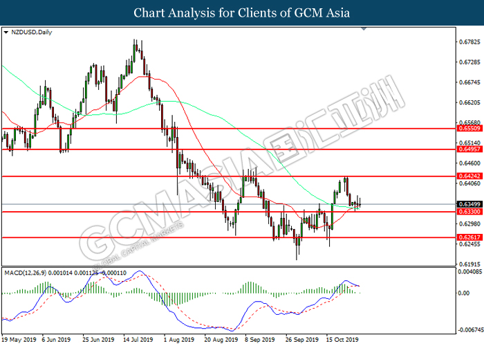 NZDUSD, Daily: NZDUSD telah didagang di dalam saluran sisi sementara kini menguji di tahap sokongan 0.6330. MACD yang memaparkan momentum bullish yang berkurangan mencadangkan pasangan ini untuk didagang dengan lebih rendah selepas ia memecah tahap sokongan tersebut.