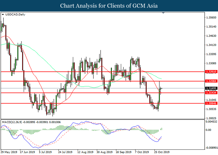 USDCAD, Daily: USDCAD telah didagang dengan lebih tinggi selepas ia memecah tahap rintangan terdahulu 1.3145. MACD yang memaparkan momentum bullish mencadangkan pasangan ini untuk melanjutkan keuntungannya ke arah tahap rintangan 1.3210.
