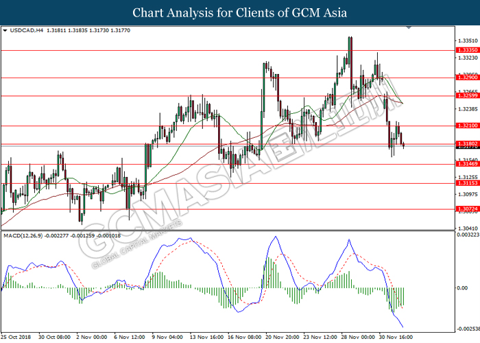 USDCAD, H4: USDCAD telah didagang dengan lebih tinggi selepas ia melantun dari tahap sokongan 1.3155. MACD yang mula untuk membentuk silang bullish mencadangkan pasangan ini untuk meningkat selanjutnya dan menuju ke arah 1.3285.