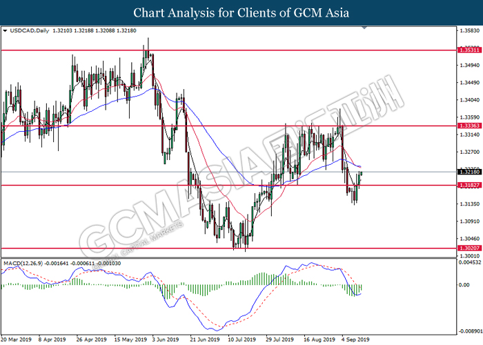 USDCAD, Daily: USDCAD telah didagang dengan lebih tinggi selepas ia berjaya memecah tahap rintangan sebelumnya 1.3185. MACD yang memaparkan penyusutan pada momentum menurun mencadangkan pasangan ini untuk melanjutkan keuntungannya ke arah tahap rintangan 1.3335.