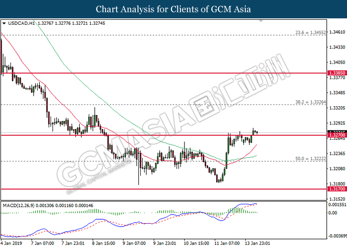 USDCAD, H1: USDCAD telah didagang dengan lebih rendah sementara kini menguji di tahap sokongan 1.3270. MACD yang memaparkan penyusutan pada momentum menaik mencadangkan pasangan ini untuk didagang dengan lebih rendah bagi jangka pendek sebagai pembetulan teknikal.